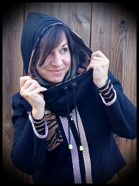 • Made in black knitted fabric and lined with tiger fleece to stay warm and cozy.