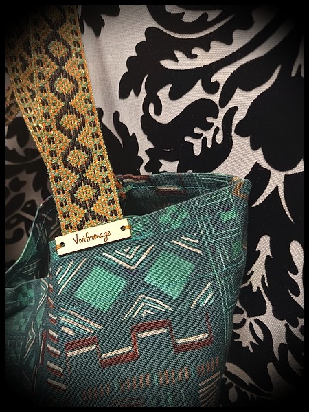 • Lining made from vintage mint green tablecloth with inside pocket and reinforced base.