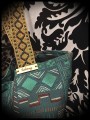 • Made from thick fabric with an Aztec pattern on a dark green background.