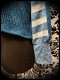 • Made in teal chenille knitted fabric and blue and off white striped knitted fabric.