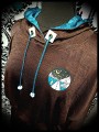 • Metal eyelets in mint faux leather and turquoise blue paracord ties with matching end caps.