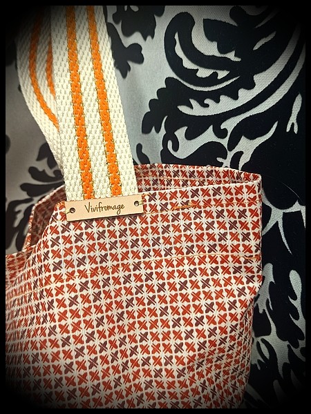 • Lining made from vintage pale pink tablecloth with inside pocket and reinforced base.