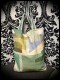 • Made from a thick fabric with a green and blue watercolor print on a beige background.