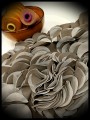 • Made in taupe muslin fabric with beautiful light grey and taupe petals.