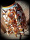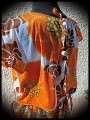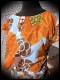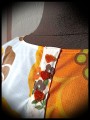 • Made from vintage napkins with orange, brown, and khaki floral patterns.