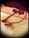 • Metal eyelets in black faux leather and paracord ties with matching end caps.