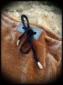 • Adjustable waist with grey fake leather and metal eyelets with black ties.
