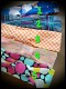 - multicolored floral-printed knit fabric (print 1), black/pink/green plaid knit fabric (print 2), orange gingham-textured knit fabric (print 3), neon-colored light knitted fabric (print 4), multicolored large-polka-dot Lycra (print 5)