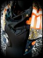 The whimsical colorful print and elegant satin come together in this beautiful scarf!