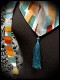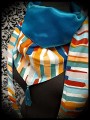 The whimsical colorful print and elegant satin come together in this beautiful scarf!
