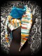 • Made of multicolored fabric with a paint stroke print and lined  with turquoise blue satin fabric.