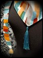• Turquoise decorative tassel in the center and small beige tassels on the ends.