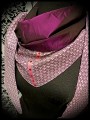 • Made of plum and white fabric with Seigaiha (waves) Japanese print and lined  with plum satin fabric.