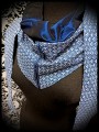 • Made of royal blue and white fabric with Seigaiha (waves) Japanese print and lined with midnight blue satin fabric.