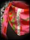 • Made of apple green and candy pink cotton fabrics with apples and cherries all over all over and lined with bright pink mottled knit fabric.