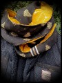 • Made from black jacquard fabric with gold Xmas trees and lined with yellow fleece with gold stripes.