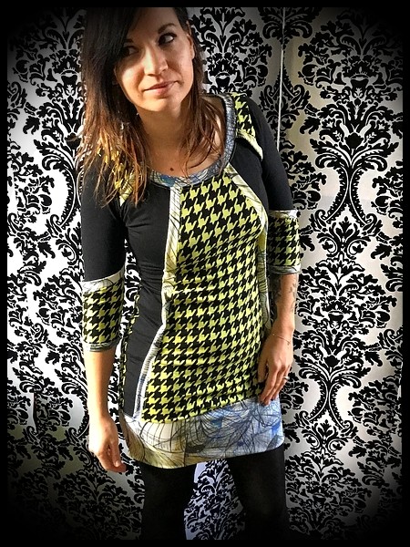 • Confectionné en tissu grège à motif étoiles rétro et doublé en jersey mauve.
