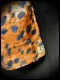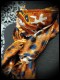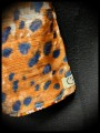 • Confectionné en mousseline rouille et noire imprimé léopard avec fils Lurex et doublé en tissu marron à motifs ethniques.