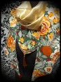 • Confectionné en tissu vert kaki, ocre, rouille motif fleuri et doublé en satin doré.