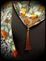 La fantaisie du motif coloré et l'élégance du satin se rejoignent dans ce beau foulard !