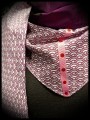 • Confectionné en tissu prune motif japonais Seigaiha (vagues) et doublé en satin prune.