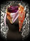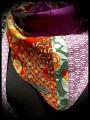 • Confectionné en tissu rouge, ocre, bordeaux motif d'inspiration asiatique et tissu prune motif Seigaiha et doublé en satin prune.