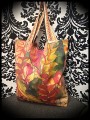 • Confectionné en toile épaisse à motif de fleurs ocre, orange et vert.