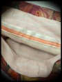 • Anses en sangle écrue à chevrons oranges et rouges.