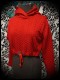 • Coupe ample avec manches longues et large capuche doublée avec jersey rayé rouge, noir et gris.