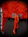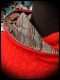 • Base resserrable avec œillets en simili cuir argent foncé et cordons rouges.
