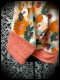 • Confectionné en molleton à motif floral vert et orange sur fond menthe et jersey corail chiné.