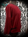 • Confectionné en maille tricotée ajourée bordeaux et jersey noir.