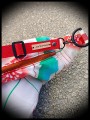 • Confectionné à partir d'une couverture matelassée assez fine à fleurs rouges sur fond rose pâle et doublée en tissu tie & dye rouille.