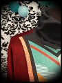 • Confectionné en maille très fluide et légèrement brillante rouge foncé chiné avec panneau central et grand col en jersey noir et détails corail chiné.